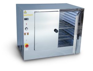 Temperature from ambient to 200 °C is controlled by a digital precision