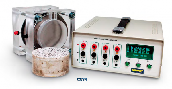 Laboratory test device for the measurement of the resistance of the concrete against the penetration of chloride.