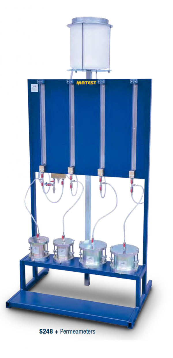 The stand can hold up to 4 permeameters having Ø 4” or 6” to