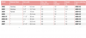 get openings of 12 – 24 – 36 – 48 – 60 – 72 – 84 – 96 – 108 mm.