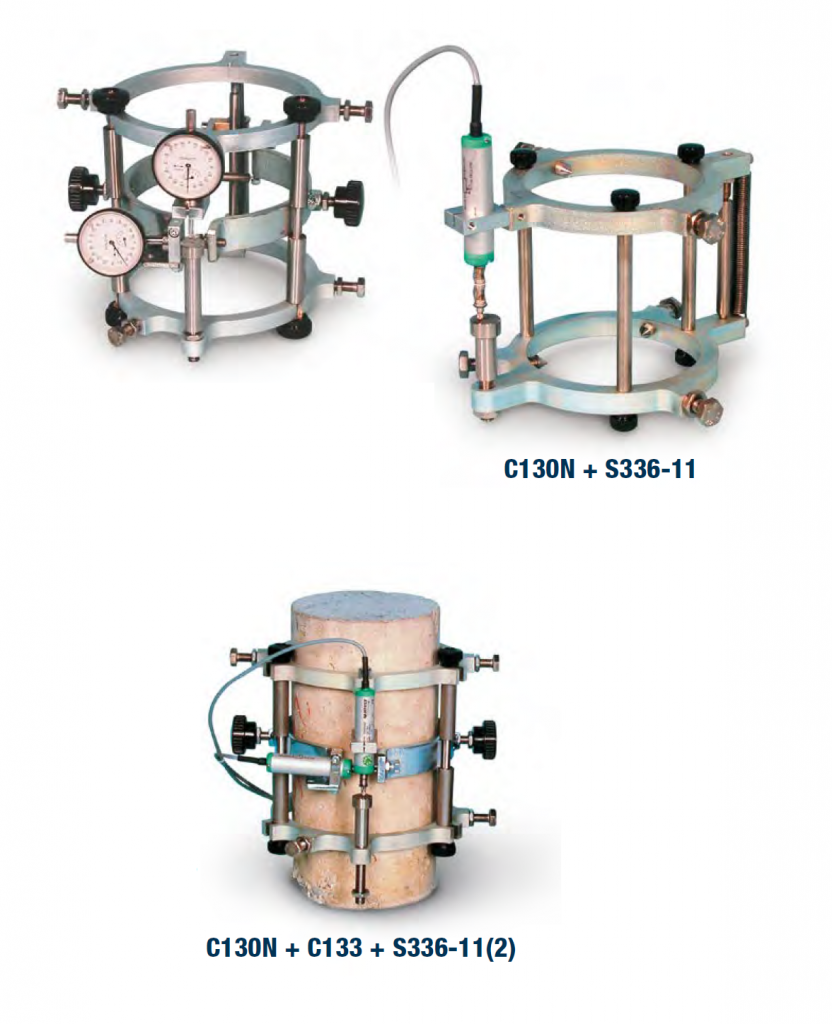 Used to determine the strain and deformation characteristics of concrete specimens. It comprises two steel rings for clamping to the specimen, two